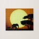 Cette illustration montre un éléphant de mère ainsi que son éléphant de bébé, marchant par la savane africaine pendant le coucher du soleil.