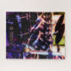L'illustration sur cette casse-tête est une photographie originale d'un ensemble de tambour. Les tambours noirs brillants avec leurs jantes argentées reflètent les couleurs des lumières en le studio, les bleus, les rouge et les verts. Des cymbales au-dessus des tambours attendent pour être frappées. La photo s'appelle "le batteur", puisque le batteur peut être trouvé dans l'image. Mais ce texte peut être personnalisé, ou supprimé si vous préférez.