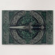 Un design celtique dans les tons verts avec une épée courte et des noeuds celtiques.