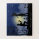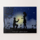 Un couple est en silhouette contre le ciel nocturne avec une lune brillante derrière eux et les étoiles. Le texte, je vous aime - veuillez dire oui!, est facilement personnalisé si vous souhaitez changer le libellé.