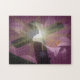 Puzzle de 11" x 14" avec une image composite d'une croix et d'un lis de Pâques vu à travers un voile violet. Voir la collection Pâques Puzzle dans sa catégorie HOME dans la section VACANCES.