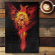 Femme qui est une flamme avec des ailes. Une femme phénix à flamme rouge, orange et jaune sur fond de noir