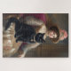 Femme victorienne avec chat noir puzzle. © Jigsaw Wonderland à Zazzle. Une femme victorienne assise sur une chaise avec un grand chat noir assis sur ses genoux.
