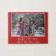 Festive Red Script Photo Noël Jigsaw puzzle de Noël. Design moderne et simple avec une photo sur un arrière - plan rouge - personnalisez le puzzle avec votre photo de famille. Le texte Joyeux Noël et les voeux sont dans la typographie blanche tendance - personnaliser le texte. Faites votre propre cadeau de Noël personnel pour votre famille et vos amis.