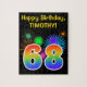 Cet amusement, caractéristiques de conception vibrantes de puzzle un motif inspiré par feux d'artifice de célébration colorés, avec le nombre "68" ayant un arc-en-ciel multicolore comme le motif de gradient, sur un arrière - plan coloré par noir. Il comporte également un nom et un message faits sur commande d'événement, tel qu'une salutation d'anniversaire. Un puzzle comme ceci pourrait être une manière d'amusement d'envoyer un message d'anniversaire pour célébrer quelqu'un les soixante huitième anniversaires. [~Z0000329]