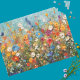This pretty jigsaw puzzle features an image of a field of colorful wildflowers. It features shades of yellow, orange, red, blue, green and white. This puzzle is not only beautiful, it makes the perfect floral gift for grandmothers, mothers, sisters or anyone who loves flowers, gardening or nature. It's available in multiple sizes with various numbers of pieces.