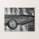 L'emblématique Flatiron Building de New York, avec horloge en noir et blanc
