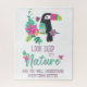 Ce puzzle inspirant et stimulant présente une belle empreinte tropicale aux couleurs vives, avec un joli dessin animé toucan, des feuilles et des fleurs tropicaux colorés, et un petit oiseau rose sur un arrière - plan blanc clair. La légende, d'Einstein, dit : "regarde profondément dans la Nature et tu comprendras tout mieux", en polices violette et bleu clair.