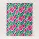 Aquarelle florale de fleurs roses et feuilles verts sur un arrière - plan bleu. Un design frais et une annonce sur votre collection florale.