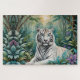 Tigre blanc aux yeux bleus et rayures dorées dans une cascade de jungle de forêt tropicale verte bleue art AI créé par minx267