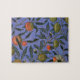 William Morris Papier peint Motif, Blue Fruit - Ce design floral est un motif de papier peint très coloré conçu en 1865-66 par le célèbre designer William Morris. L'imprimé botanique est orné d'un arrière - plan bleu vif et de grenades vertes et rouges. Des feuilles verts et des tiges se dirigent vers le côté de l'empreinte florale.