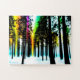 Puzzle Forêt de silhouette noire avec lueur arc-en-ciel p