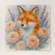 Une aquarelle illustrant un renard romantique entouré de roses doux et de lavande.