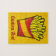 Icône frites. Les aliments indésirables entourent les icônes jaune motif arrière - plan. Texte personnalisé.
