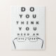 Tableau d'examen des yeux avec toutes les lettres floues à l'exception des mots oeil et test vu à travers les lunettes