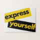 Design typographique moderne, simple et minimal d'un dicton "Express soi-même" en noir et jaune. Art graphique dynamique, cool, urbain, tendance et dynamique