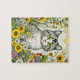 Puzzle Gray Kitty Chat assis en Fleurs