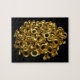 Une collection de grommets en laiton comme vous pourriez utiliser pour faire une ceinture montrée sur un arrière - plan noir.