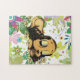 gros oeil Chien chiot dormant dans les fleurs Cartoon Animal Art vintage rétro illustration puzzle