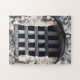 Crosshatched wooden bars frame a castle window, allowing light and air to pass while offering protection from intruders. The simple geometry reflects a balance between openness and defense within the stone walls of San Felipe de Lara.