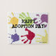 Le jour heureux d'adoption rouge, mains vertes et jaunes déconcertent