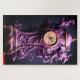 Ce puzzle a une horloge violette dessus.