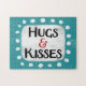 "Hugs & Kisses" est une mignonne citation inspirante ou motivationnelle avec une forme d'accent blanc entourée de points blancs texturés.