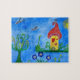 Weiße Illustration - Haus, Herz und Zauberbaum Blau, Gelb, Grün zeichnend.