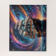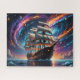 Un grand navire en pleine voile glisse dans une mer calme sous un ciel coloré et magique de galaxies, de planètes et d'étoiles. Belle image rêveuse.