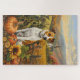 Célébrez la beauté de la chute avec cette peinture vibrante d'un chien assis à côté d'une généreuse moisson de Thanksgiving. Les riches couleurs d'automne des citrouilles, des tournesols et des paysages rustiques des fermes créent une atmosphère chaleureuse et accueillante, parfaite pour toute décoration saisonnière amoureux des chiens.
