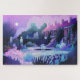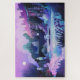 Illustration numérique représentant un jardin secret d'été entouré d'une grande clôture verte avec une porte sculptée. A proximité se trouve une grande maison de campagne anglaise immergée dans le rêve nocturne et dans la fenêtre, on peut voir la lumière mystérieuse qui s'estompe. Au centre du jardin fleuri se trouve une fontaine magique blanche à l'eau discrète