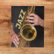 Pour les amateurs de jazz ! Un puzzle stimulant qui présente l'image photo d'un jazzman jouant sa corne de saxophone ténor de couleur or usée, usée à l'époque, ainsi que le mot "JAZZ" imprimé en lettres-blocs de couleur or. Amusant pour toute la famille ! REMARQUE : Image non conçue pour le style de puzzle carré.
