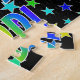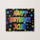 Ce design de puzzle animé, vibrant, sur le thème de l'anniversaire a le message "HAPPY BANTHDAY, JODI" avec les personnages ayant un spectre arc-en-ciel coloré inspiré motif dégradé, en plus d'un champ amusant d'étoiles arrière - plan motif. Un puzzle aussi excitant pourrait être une façon amusante d'envoyer des voeux d'anniversaire à quelqu'un nommé Jodi. [~Z0000468]