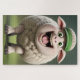 Un joyeux mouton de type dessin animé debout sur l'herbe.