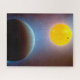 La conception de cet artiste représente le système Kepler-10 étoiles, situé à environ 560 années-lumière près des constellations de Cygnus et Lyra. Kepler a découvert deux planètes autour de cette étoile. Kepler-10b est, à ce jour, la plus petite exoplanète rocheuse connue, ou planète en dehors de notre système solaire (tache sombre contre le soleil jaune). Kepler-10c est l'objet de premier plan plus grand.