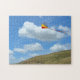 Four color diamond kite (red, yellow, green, blue) against blue sky with white fluffy clouds, flying over the hills. *** Part of coordinated set - BKM3p.