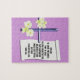 Cette conception de puzzle contient une croix, des fleurs, et un rouleau du livre de John, le vers 16 du chapitre 3.