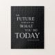 "L'avenir dépend de ce que vous faites aujourd'hui" - affiche de motivation inspirante, dans un design typographique stylisé de couleurs noir et blanc cassé, parfait pour votre bureau, votre salle de sport ou votre maison. Cette citation inspirante est du Mahatma Gandhi.