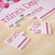 Quatre gnomes tenant des lettres qui forment le mot "AMOUR" sur un fond rayé rose.