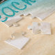 Une belle plage de sable blanc entourée d'arbres. Offert par les designers de FOMA design
