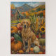 Célébrez la beauté de la chute avec cette peinture vibrante d'un chien assis à côté d'une généreuse moisson de Thanksgiving. Les riches couleurs d'automne des citrouilles, des tournesols et des paysages rustiques des fermes créent une atmosphère chaleureuse et accueillante, parfaite pour toute décoration saisonnière amoureux des chiens.