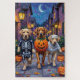 Les labradors adorables habillés de costumes d'Halloween ludiques portent des seaux citrouilles tout en faisant des tours ou en traitant sous le ciel illuminé par la lune. Ce design festif met en valeur le visage amical de la race, sa construction robuste et sa personnalité fidèle, capturant parfaitement l'atmosphère éffrayante et amusante de la nuit d'Halloween. Une célébration joyeuse pour les amoureux de les chiens comme pour les fans d'Halloween.