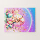 Beau lapin avec arc-en-ciel et oeufs et fleurs colorés