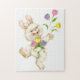 Un lapin de Pâques mignon avec un groupe de tulipes. Il a un vrai ressort dans son étape !