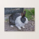 Photo de fond d'un lapin noir et blanc imprimé sur un puzzle.
