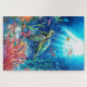 Plongez dans un monde sous-marin fascinant avec ce puzzle époustouflant qui présente une majestueuse tortue de mer glissant à travers un récif corallien vibrant. Placé face aux eaux bleues éthérées pénétrées par la lumière du soleil en continu, ce puzzle capture la beauté enchanteresse de la vie marine dans des détails extraordinaires. La scène présente une tortue de mer verte nageant gracieusement parmi les bancs de poissons tropicaux, avec de brillantes formations de coraux orange et rose décorant le fond de l'océan. Dans le courant, les algues et les plantes aquatiques s'y bousculent, tandis que les petits poissons déferlent dans les eaux cristallines, créant une expérience dynamique et captivante. Ce puzzle stimulant offre un mélange parfait de textures et de couleurs variées - des motifs complexes sur la coque de la tortue aux gradients subtils de l'eau éclairée par le soleil et aux détails complexes de la barrière de corail. La riche palette de couleurs du bleu turquoise, des oranges vibrantes et des verts profonds rend ce puzzle à la fois difficile et gratifiant à compléter.