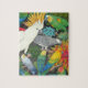 La peinture originale de beaux-arts des perroquets colorés par l'artiste Carolyn McFann sur un puzzle denteux de qualité pour le perroquet évente.
