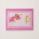 Une licorne assez rose sur un arrière - plan rayé rose.