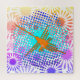 Nazca Lines Hummingbird avec effet désespéré et floras éclate dans l'arrière - plan. Version dorée. Idée cadeau.