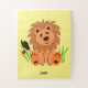 Puzzle Lion mignon dans l'herbe avec des enfants coccinel